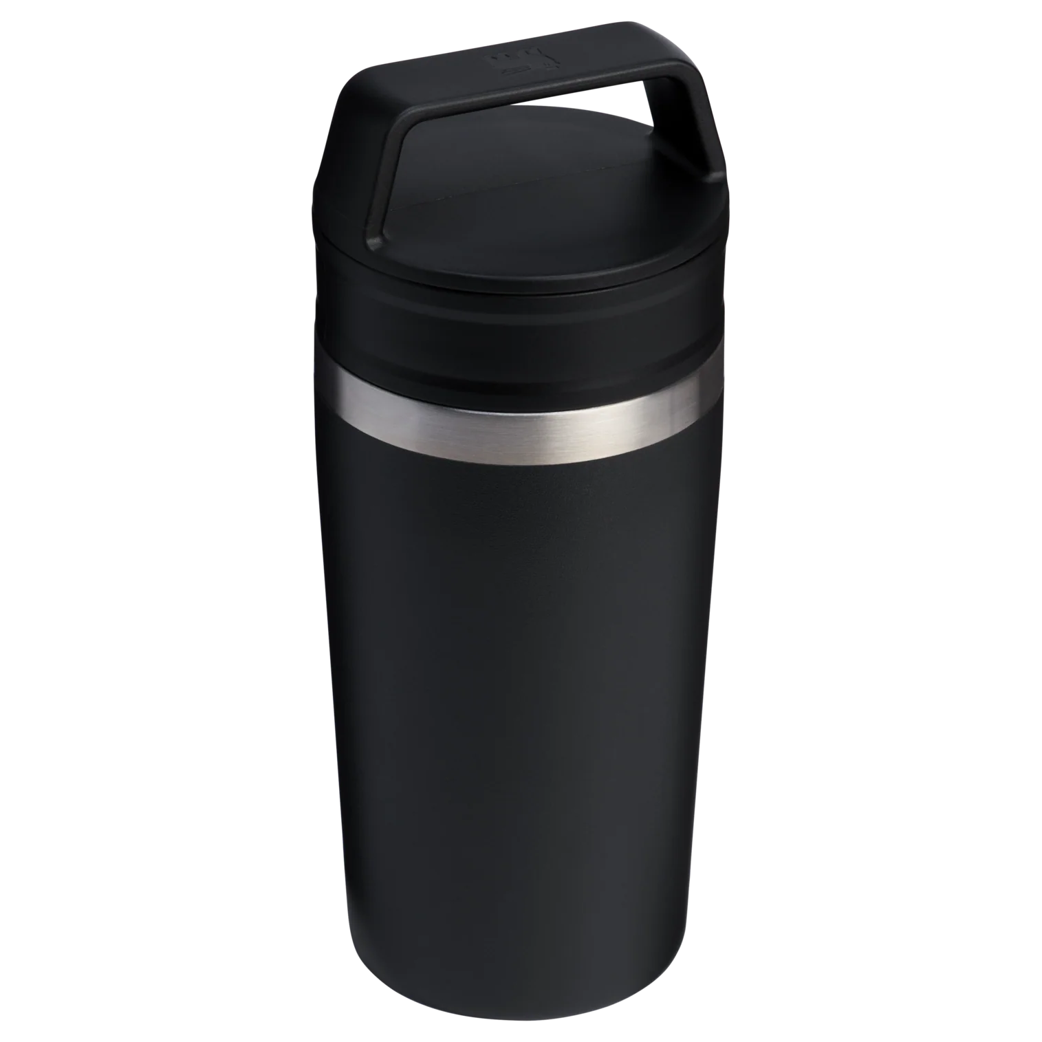 The Stanley Café-To-Go Travel Mug in Black 2.0 is crafted to accompany you seamlessly on every journey, urban or rural. Featuring a distinctive two-piece lid, it ensures a completely leakproof experience while providing effortless sipping and carrying. This compact mug keeps beverages hot for up to 3 hours, ideal for chilly morning commutes, and cold for 16 hours, perfect for keeping your iced latte refreshing during summer walks. Constructed from recycled stainless steel and fully dishwasher safe, it integrates sustainability with practicality to suit your active lifestyle.