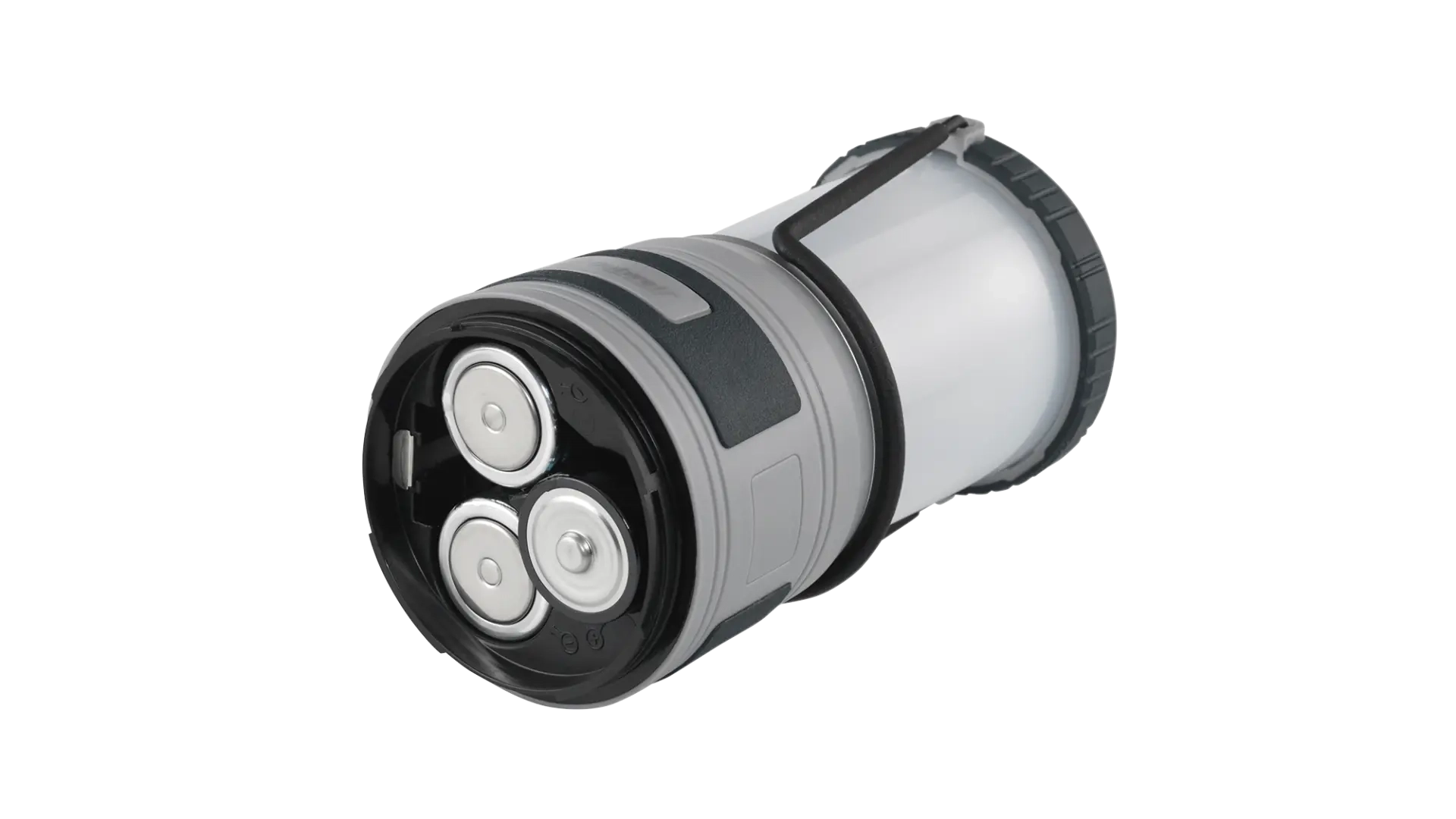 It is powered by D-size batteries, making it ideal for off-grid camping and emergencies.